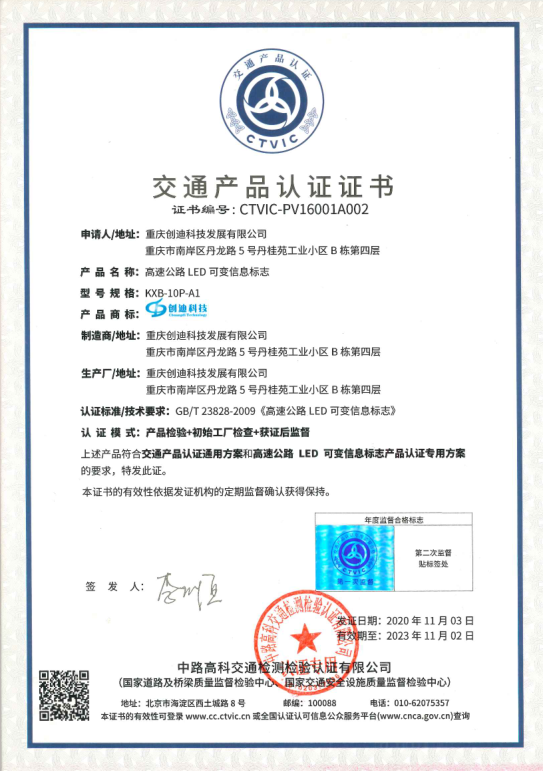 可變信息標志交通產(chǎn)品認證