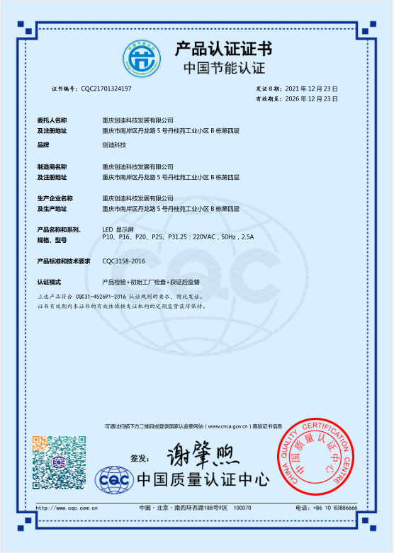 LED顯示屏節(jié)能認證